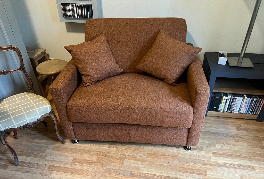 Bij deze klant hebben we een slaapstoel Brooklyn opgeleverdUitgevoerd met 2 sietkussens, chrome poten en upgrade matras